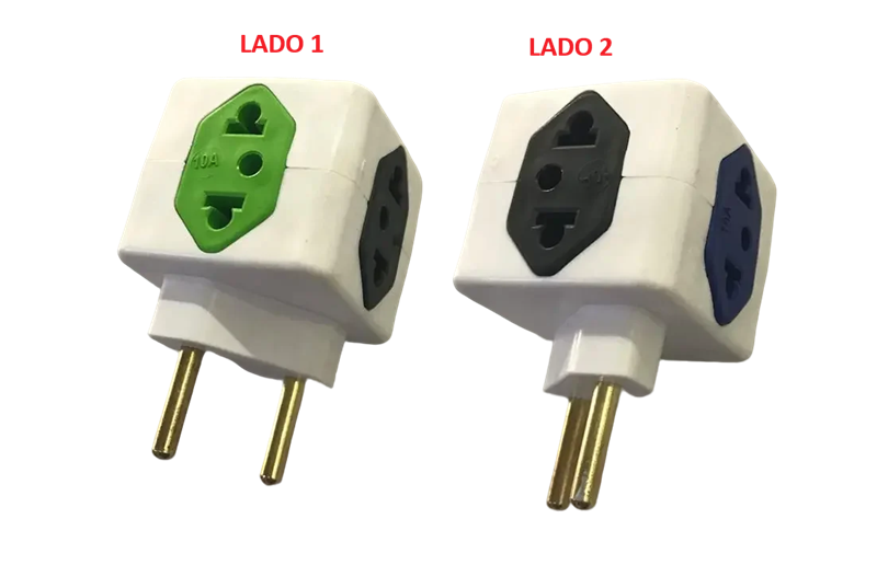 PINO CUBO 2P 3 TOMADA PRETO/VERDE/AZUL 10A + 1 TOMADA 20A VERMELHA