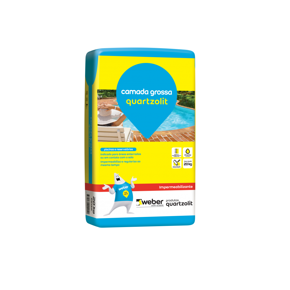 Camada grossa quartzolit é uma argamassa pronta, bastando acrescentar água, indicada para a impermeabilizar e revestir áreas enterradas ou em contato com o solo.