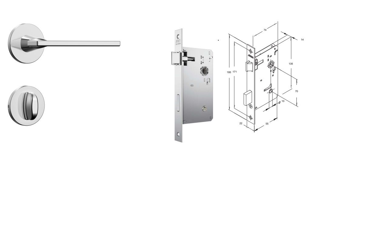 Acessórios: Chave, cilindro, maçanetas, rosetas, contra testa