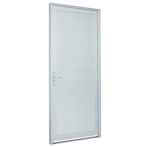 Porta de Alumínio de Abrir Alumifort Branca com Lambri Horizontal 1 Folha Abertura Direita 216x88x5,4 - Sasazaki